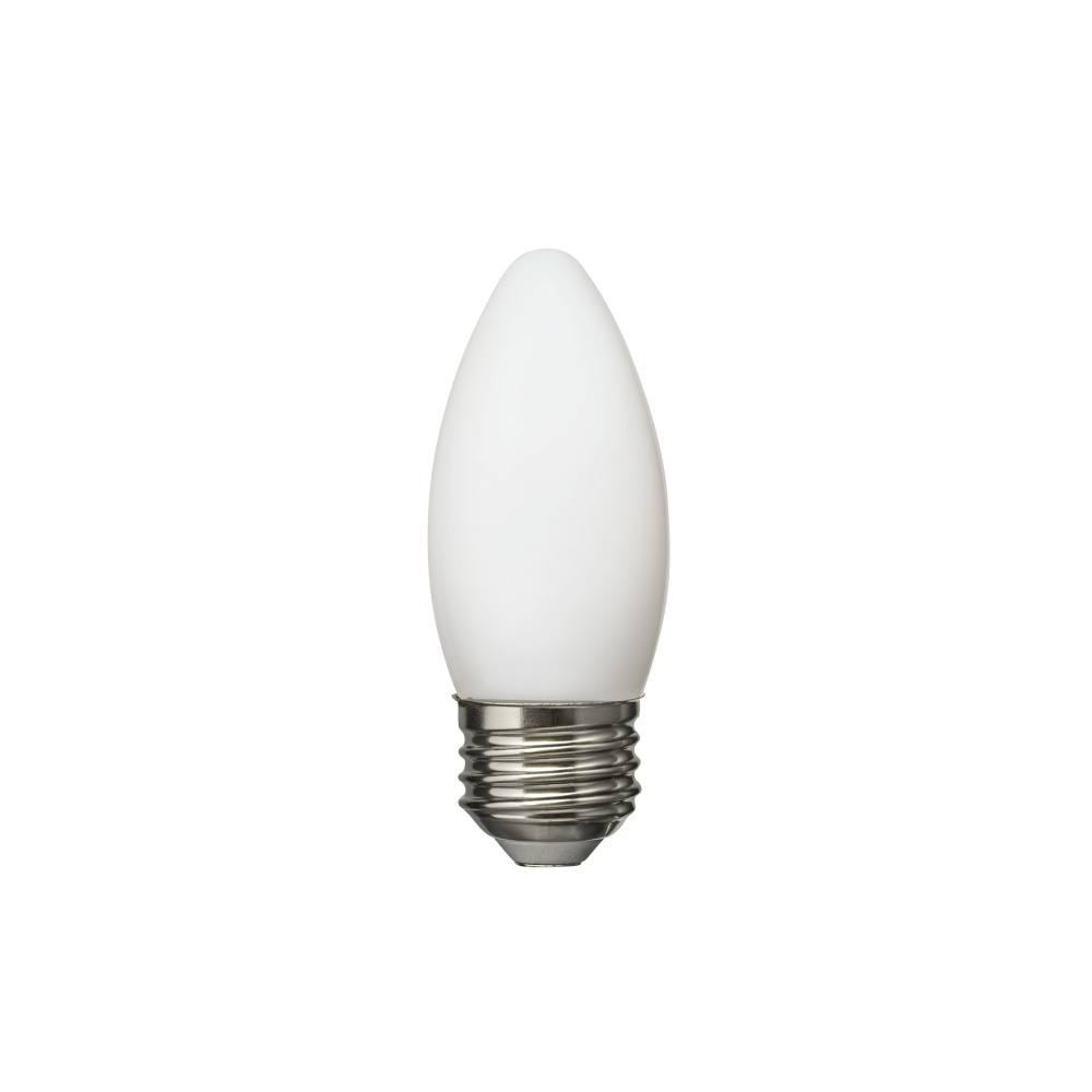 Frosted B11 4W LED offering 350 lumens of soft 2700K light; perfect for cozy ambiance.