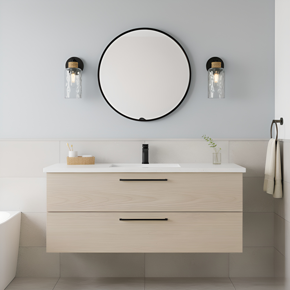 Natural elements flow through the Baltic collection, part of the Quoizel Naturals series. Clear water glass ripples with soft movement, while hand-wrapped rope detailing evokes nautical charm—an homage to the sea for which it was named. Balanced by a mat