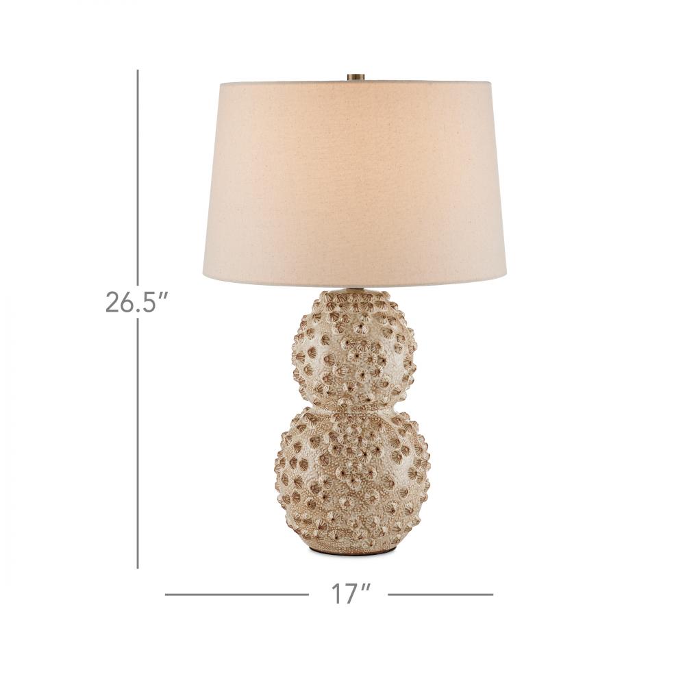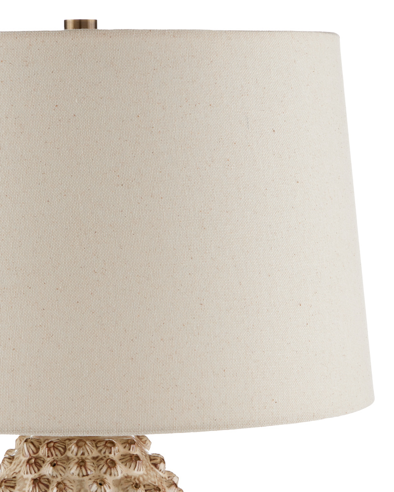The Barnacle Ivory Table Lamp is made by a group of women who live at the border of Burma and Thailand. Made from ceramic, this incredible hand-thrown table lamp is completely covered in handmade ornamentations that look like small barnacles. Once the decorative elements are in place, the ivory and brown glazes that provide the lamp with its depth and personality are applied.