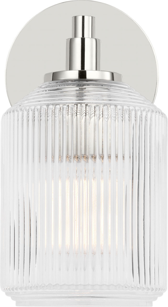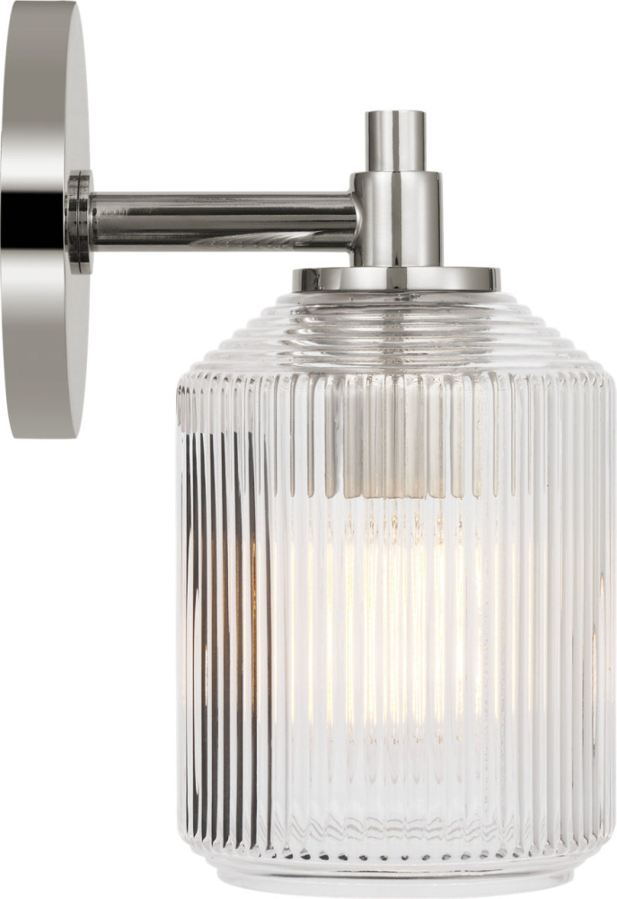 The Barstow 9" Vanity by Chapman & Myers captures the essence of vintage prismatic glass in a compact, refined form. Its ribbed clear shade features vertical and horizontal cuts that echo the precision of industrial craftsmanship, while the minimal metal frame keeps the silhouette clean and architectural. At 9", this fixture is ideal for smaller vanities or paired installations beside mirrors—where its sculptural clarity and polished detailing bring a sense of quiet sophistication to personal spaces.