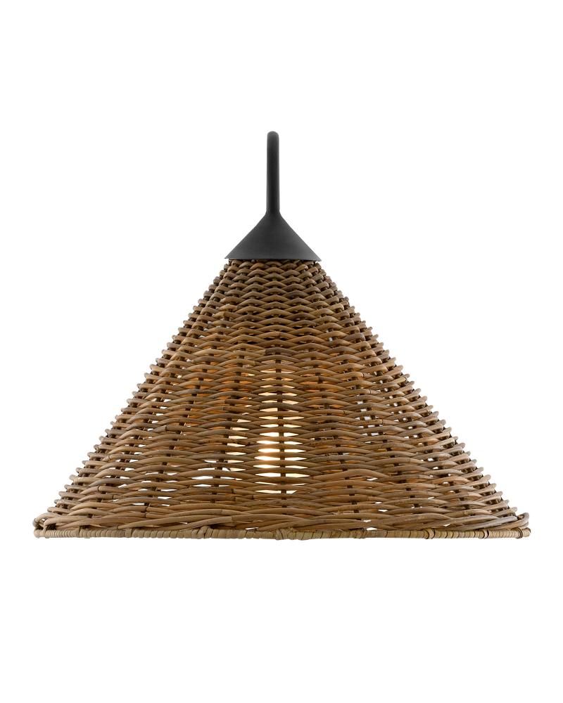 Woven natural Arurog reeds create the elemental shade of the Basket Wall Sconce. The wrought iron frame and wall plate in a blacksmith finish are simple in their design to make this rattan wall sconce perfect for casually chic interiors.