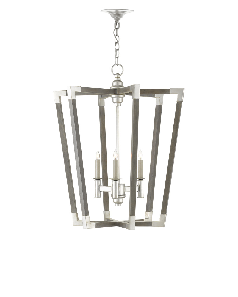 The Arts & Crafts movement inspired the design of the Bastian Small Gray Chandelier, which is made of wrought iron and wood in chateau gray and contemporary silver leaf finishes. The crisp feel of the silver metal clasping the spokes of wood brings extra sophistication to this lantern-shaped chandelier. There are a number of designs in this family of fixtures. Adjustable from 35.5" to 103.5" with use of included chain/rod kit/cable. If your space calls for a longer drop, additional chain/rods/cable is available for purchase.