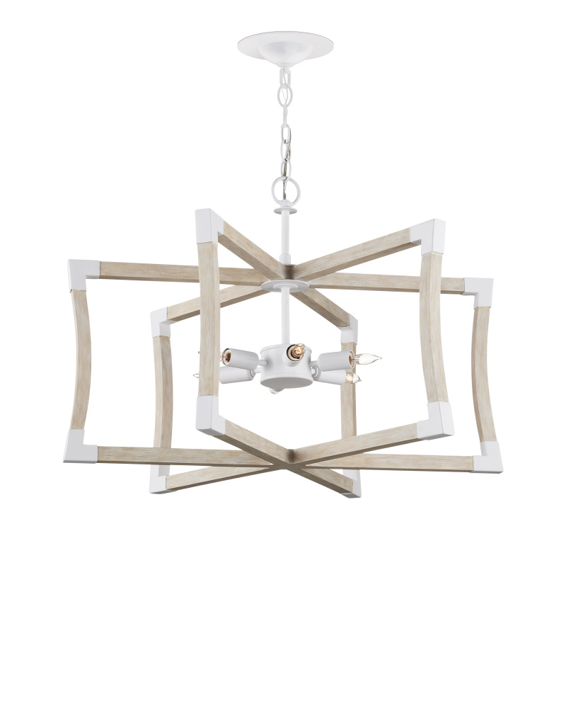 The Arts & Crafts movement inspired the design of the Bastian Small Sandstone Semi-Flush Mount, which is made of wrought iron and wood in sugar white and sandstone finishes. The crisp feel of the white metal clasping the spokes of washed wood brings extra sophistication to this lantern-shaped chandelier. The Bastian fixtures remain some of the most popular in our lighting lineup, now available in this new combination of finishes. Adjustable from 25.75" to 93.25" with use of included chain/rod kit/cable. If your space calls for a longer drop, additional chain/rods/cable is available for purchase.
