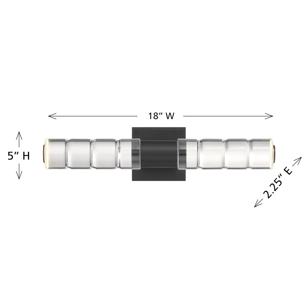Highly textured batons of K9 crystal draw the eye and shine brightly in the Savoy House Beale LED wall sconce. The crystal takes center stage, held in an understated structure that is decorated in a chic Black Lustre finish. This edgy style is a perfect way to illuminate a bath vanity, piece of art, hallway, living room, bedside table or any other space you can imagine! Beale is 5" in height, 18" in width and extends 4.5" from the wall. It uses integrated LED light sources.