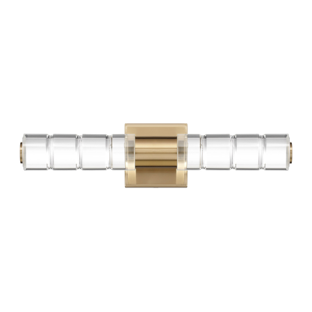Highly textured batons of K9 crystal draw the eye and shine brightly in the Savoy House Beale LED wall sconce. The crystal takes center stage, held in an understated structure that is decorated in a chic Noble Brass finish. This edgy style is a perfect way to illuminate a bath vanity, piece of art, hallway, living room, bedside table or any other space you can imagine! Beale is 5" in height, 18" in width and extends 4.5" from the wall. It uses integrated LED light sources.