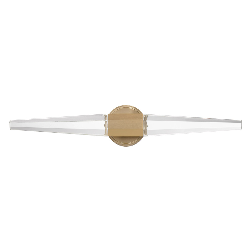 Get right to the point of style with the Savoy House Beaumont LED wall sconce. Two pieces of faceted, pointed K9 crystal burst forth from an understated base, which is finished in super chic Noble Brass. This edgy style is a perfect way to illuminate a bath vanity, piece of art, hallway, living room, bedside table or any other space you can imagine! Beaumont is 5.25" in height, 28" in width and extends 4.25" from the wall. It uses integrated LED light sources.