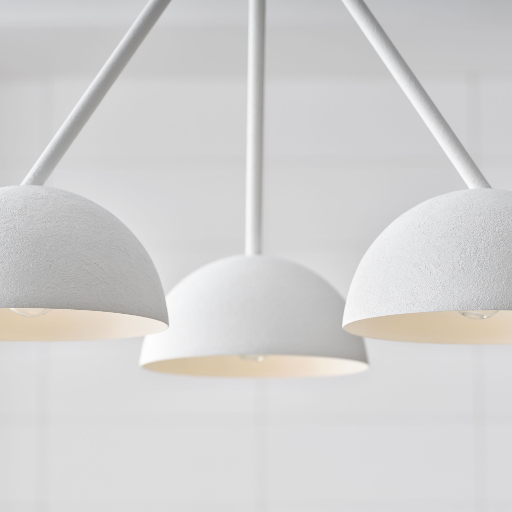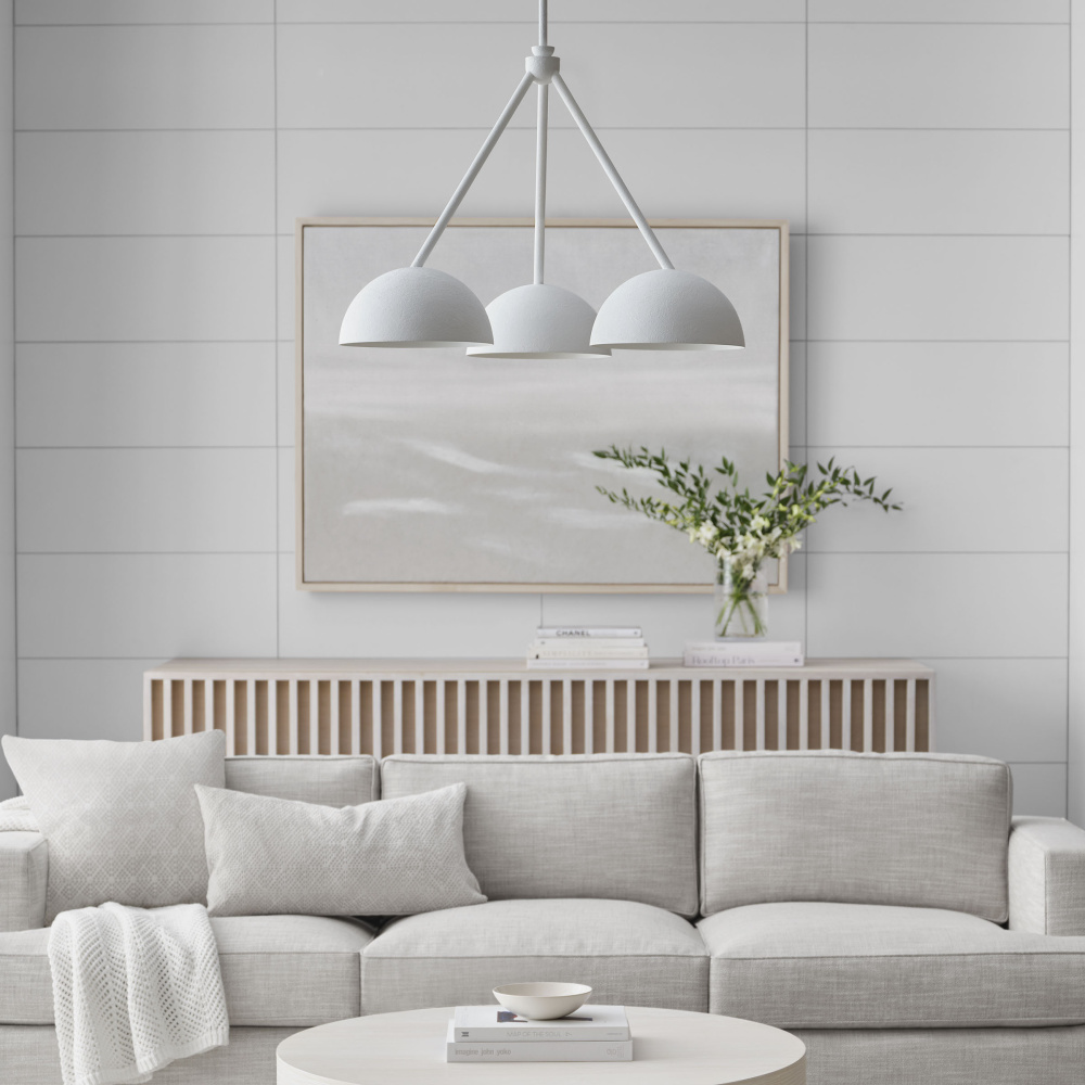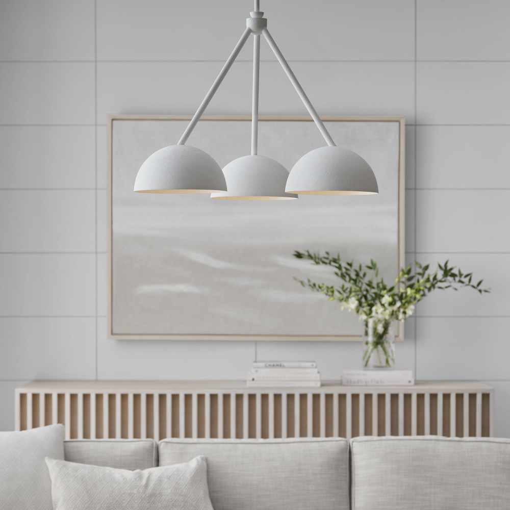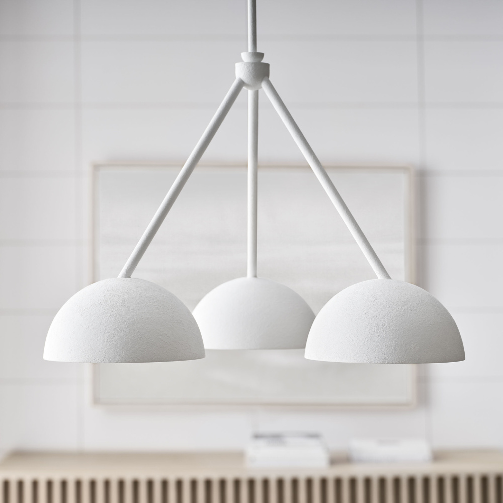 Designed by Christiane Lemieux, the Beaunay three light single tier chandelier in cast plaster is a versatile piece can be used anywhere. Featuring round, bowl-like shades, Beaunay reflects 1920's - 40's European design influences, everything from art deco through to Italian midcentury – even the classic torchieres by Serge Roche. This series includes 2 chandeliers, a pendant and 2 wall sconces, all available in a Cast Plaster finish which gives a beautiful hand-crafted look.
