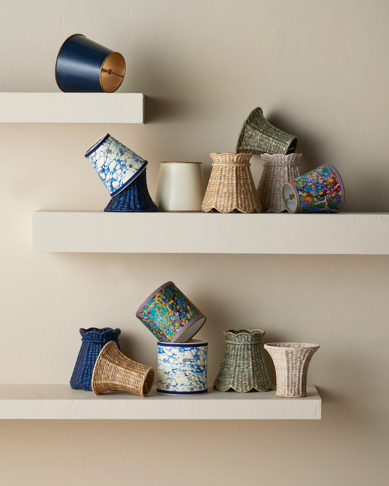The Bell Natural Chandelier Shade was designed by Suzanne Duin, who founded the Houston shop and design studio Maison Maison. Known for a keen eye in sourcing authentic French antiques and home accessories from around the globe, Duin has created a line of woven products that are handmade by artisans in South Asia. The bell-shaped shade is made of natural seagrass, which brings a textural artistry to each one.