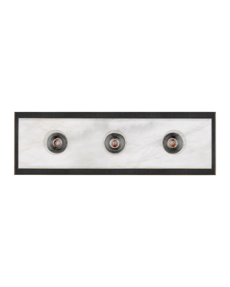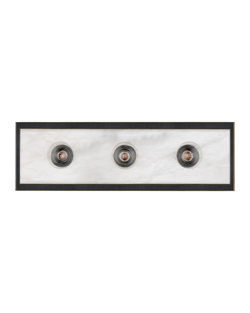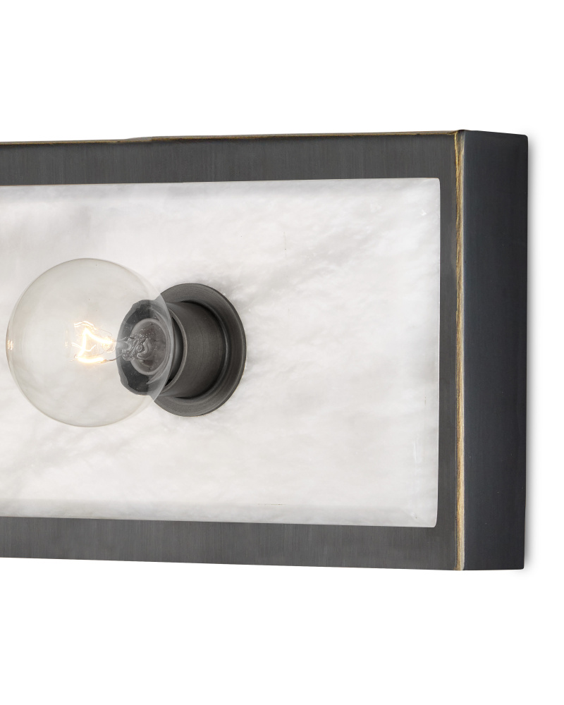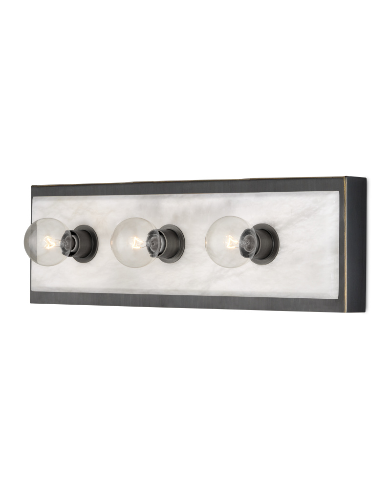 The Berdine Medium Bronze Bath Bar is a simple design that allows the natural alabaster to shine. Made of metal in an oil-rubbed bronze finish, the depth of the black contrasts the coolness of the stone to bring a subtle complexity to this design. It can be mounted vertically or horizontally, and the alabaster panel has a nice bevel to it where it meets the metal rim.