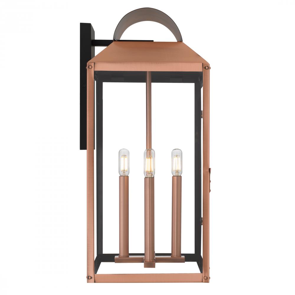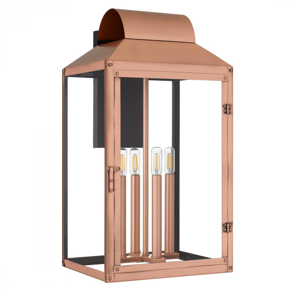 Classic charm meets timeless romance in the Beryn Outdoor Wall Lantern. Finished in a beautifully weathered aged copper, this lantern glows with warmth and character—like a whisper from a bygone era. The clear glass panels showcase the soft flicker of ca