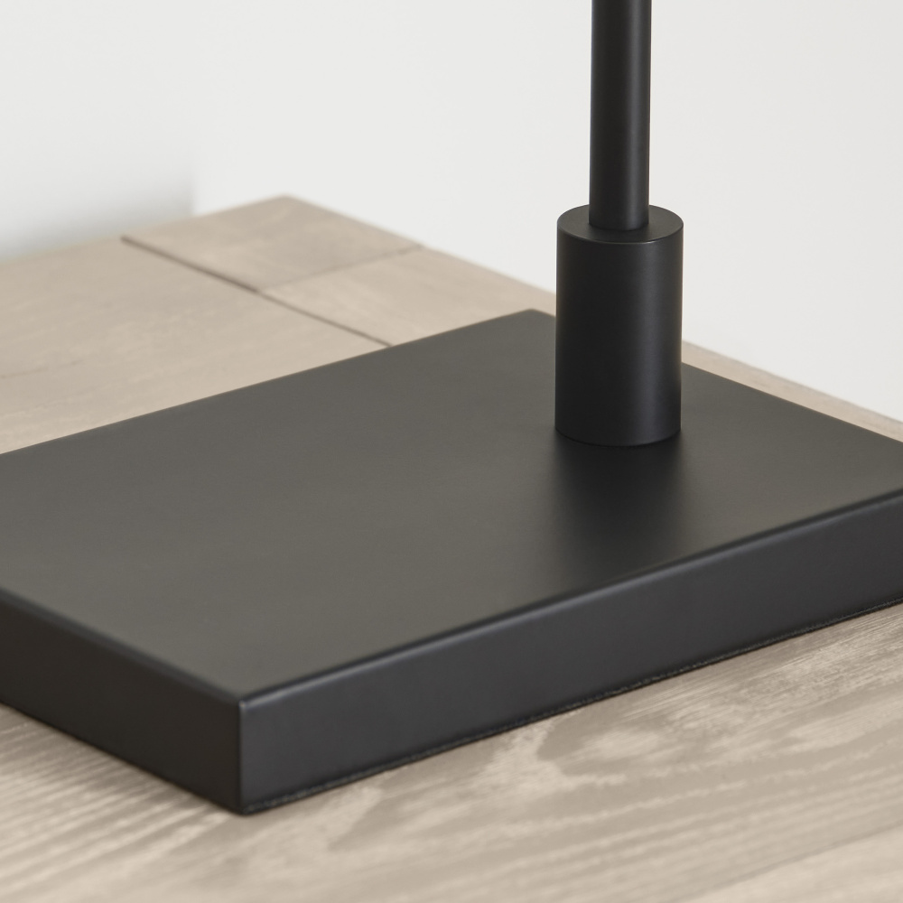 Designed by Drew & Jonathan Scott, Binx is a small-scale task table lamp with a slight equestrian look. Trimmed in Midnight Black or Satin Brass, this sleek task lamp flaunts a slender neck and flared shade full of retro flair.