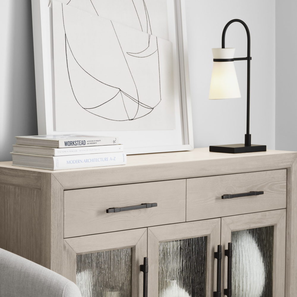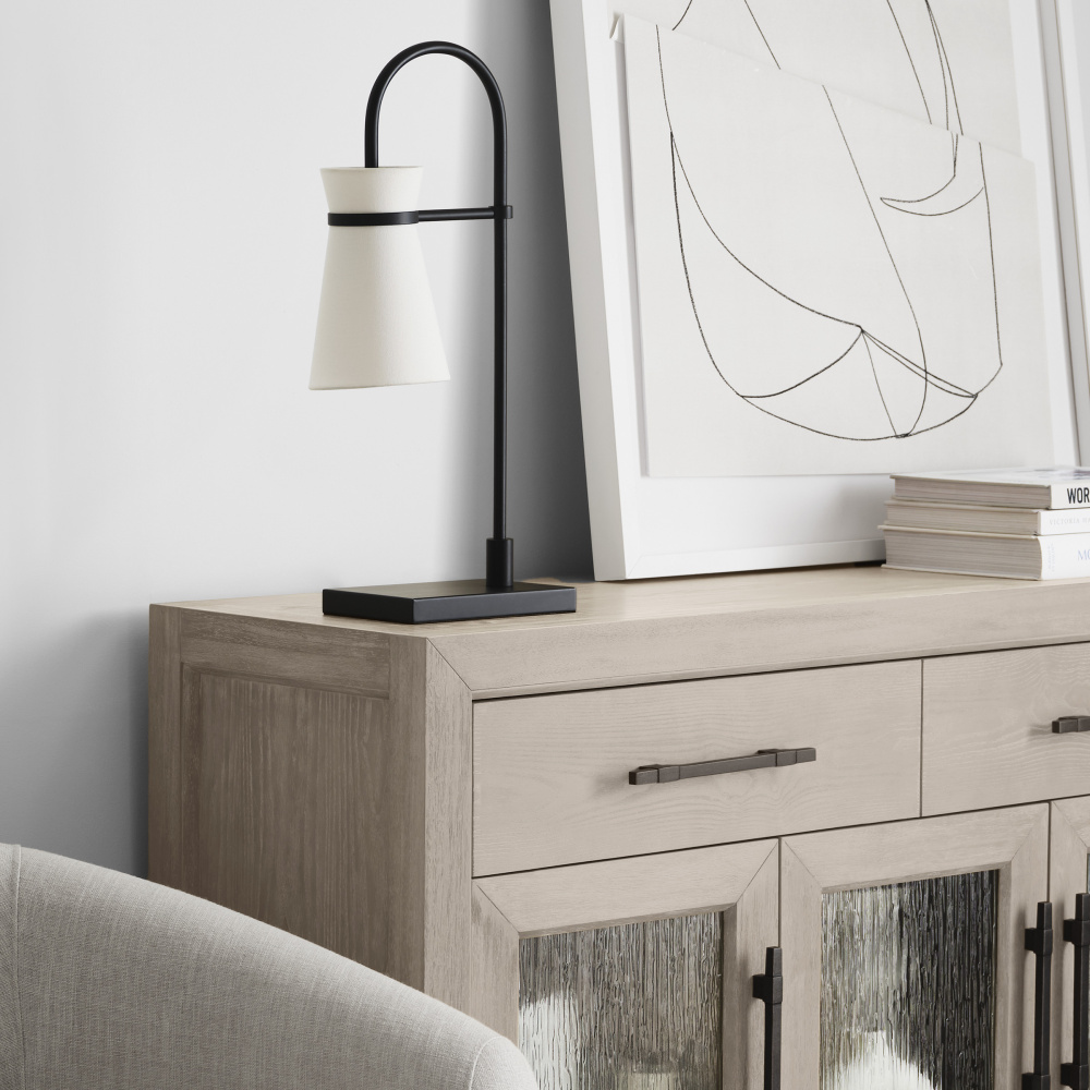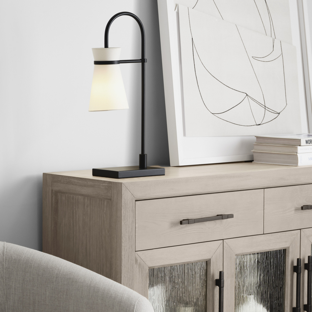 Sleek, contemporary fixture will complement bedrooms, home offices, and living rooms