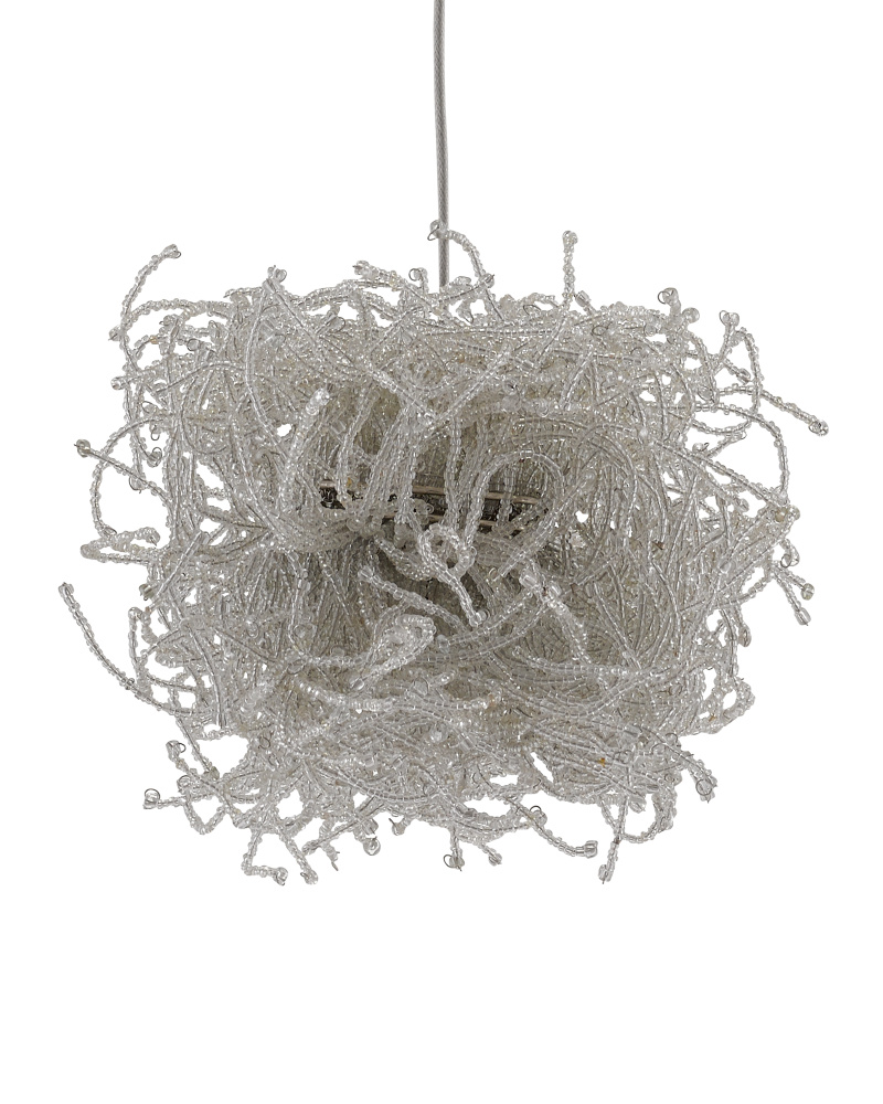 The Birds Nest 36-Light Multi-Drop Pendant is an effervescent beaded pendant that looks like luminous nests. Rather than twigs, the shades are made up of whorls of clear beads strung along pieces of wire. It takes many hours for our artisans to create these shades that look so whimsical. The canopy of this piece is luminous in a painted silver finish. This fixture is among Currey & Company's multi-drop pendant collection, which includes multiple configurations.