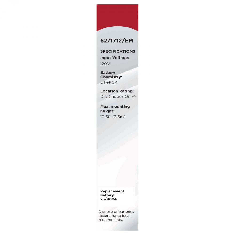 90 Minute Battery Runtime; 24 Hour Recharge Time; Fixture not included; Battery should be changed approximately every 2 years