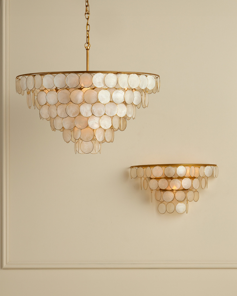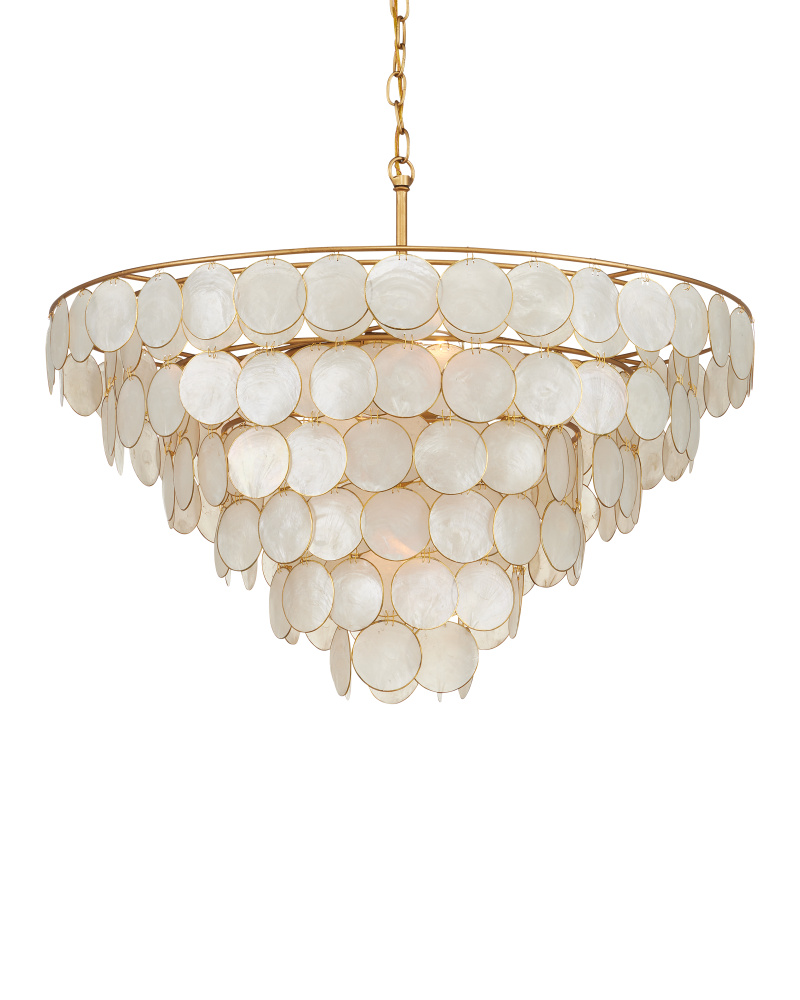 Ethereal in its overall vibe, the Bon Vivant Large Semi-Flush Mount features discs that effervesce with illumination, made of Capiz shells ringed in a decorative metal edge that matches the gold finish on the rest of the fixture. The thinness of the wires that fasten the discs to the frame and to each other is a sophisticated design detail. This gold semi-flush is convertible to a chandelier when the lower canopy is removed. Adjustable from 31" to 99" with use of included chain/rod kit/cable. If your space calls for a longer drop, additional chain/rods/cable is available for purchase.