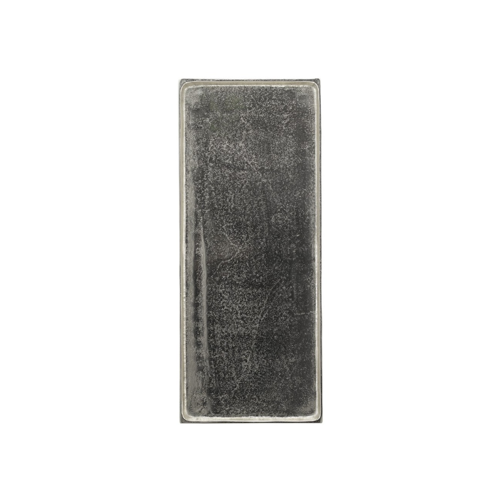 The Boyles Silver Side Table has a profile that is so handsome you may think twice about disturbing its good looks with accessories. The simple iron base that has been treated to a black forged finish proudly lifts its aluminum tray-like top in antique silver, which matches a bottom shelf in finish and shape. This side table is an expressive feature for any spot where a personality-packed table is needed. There are a number of products in an array of finishes in our Boyles offerings.