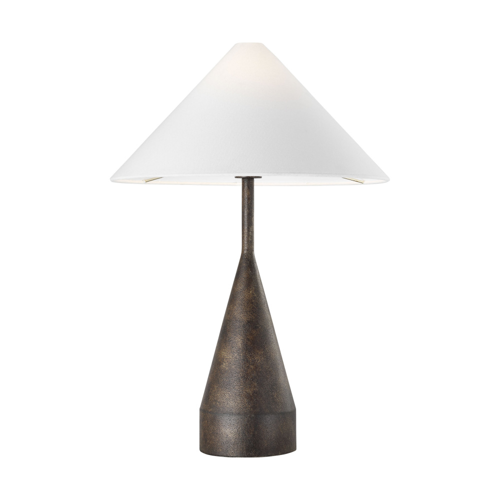 Crafted with Steel in a Rustic Bronze finish with white linen fabric shade