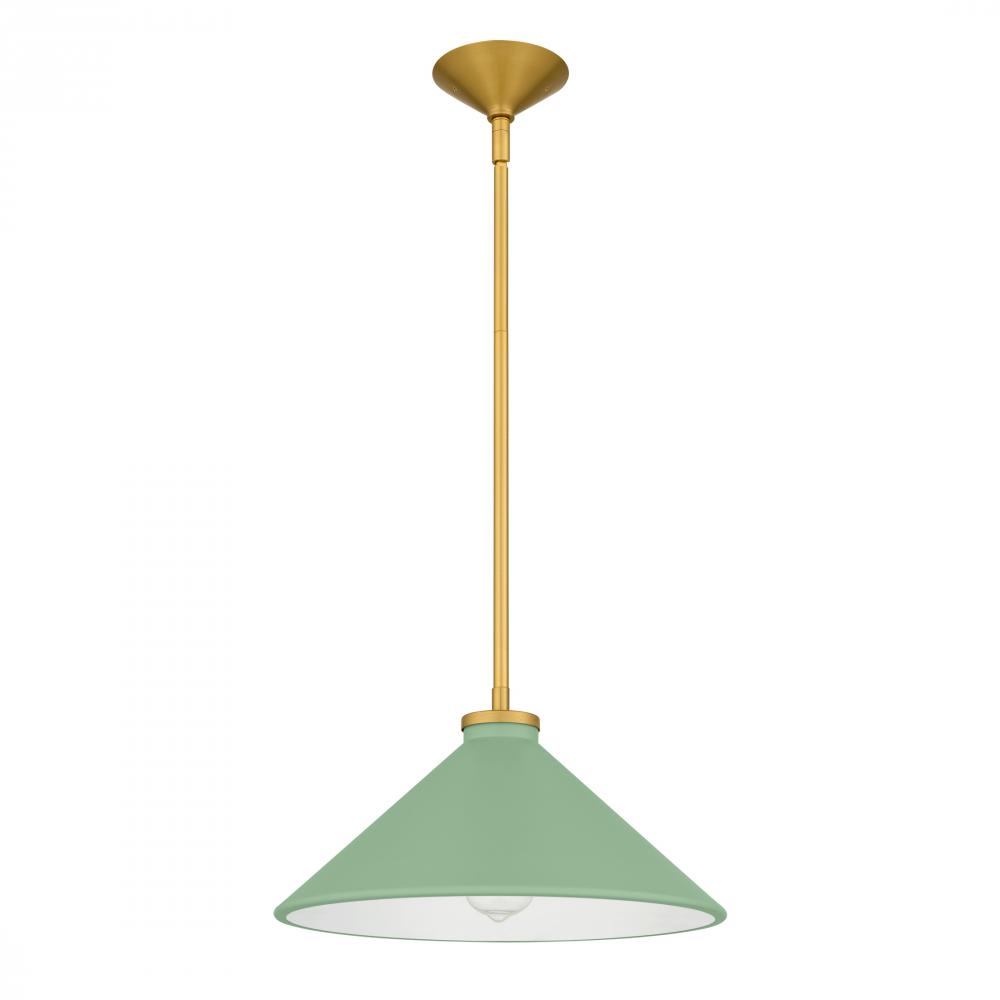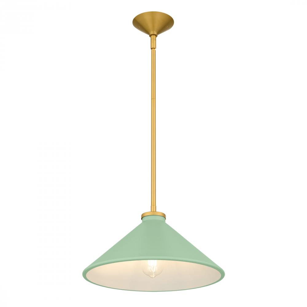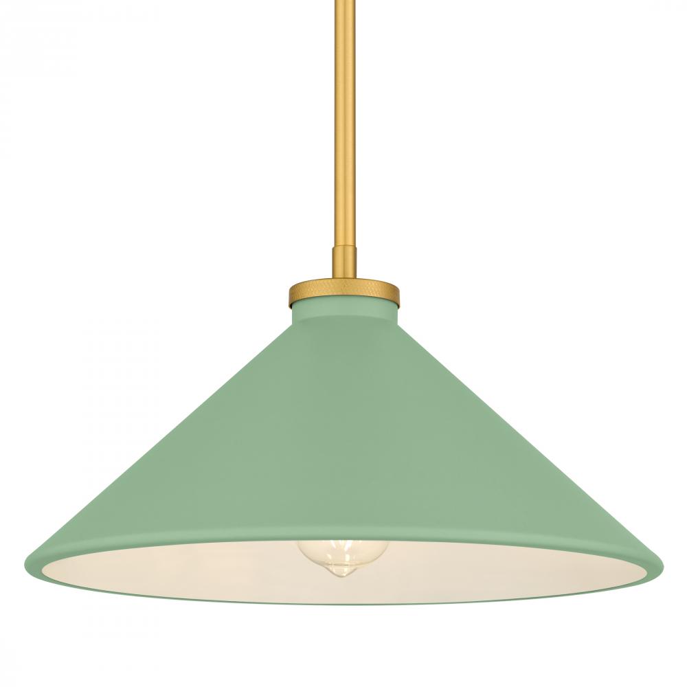 With a nod to mid-century charm, the Bradbury pendant light brings warmth and personality to any space. Its brushed gold accents gleam softly, setting off the crisp, conical shade available in a spectrum of colors—from serene light blue and fresh light g