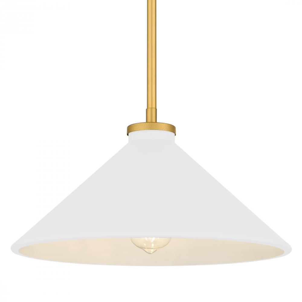With a nod to mid-century charm, the Bradbury pendant light brings warmth and personality to any space. Its brushed gold accents gleam softly, setting off the crisp, conical shade available in a spectrum of colors—from serene light blue and fresh light g