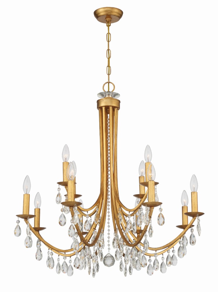 A classic yet moderns style with slim, upward curved arms strung in curtains of faceted crystal jewels, create visual interest. Complementary to a variety of home décor styles this chandelier will work in any space.