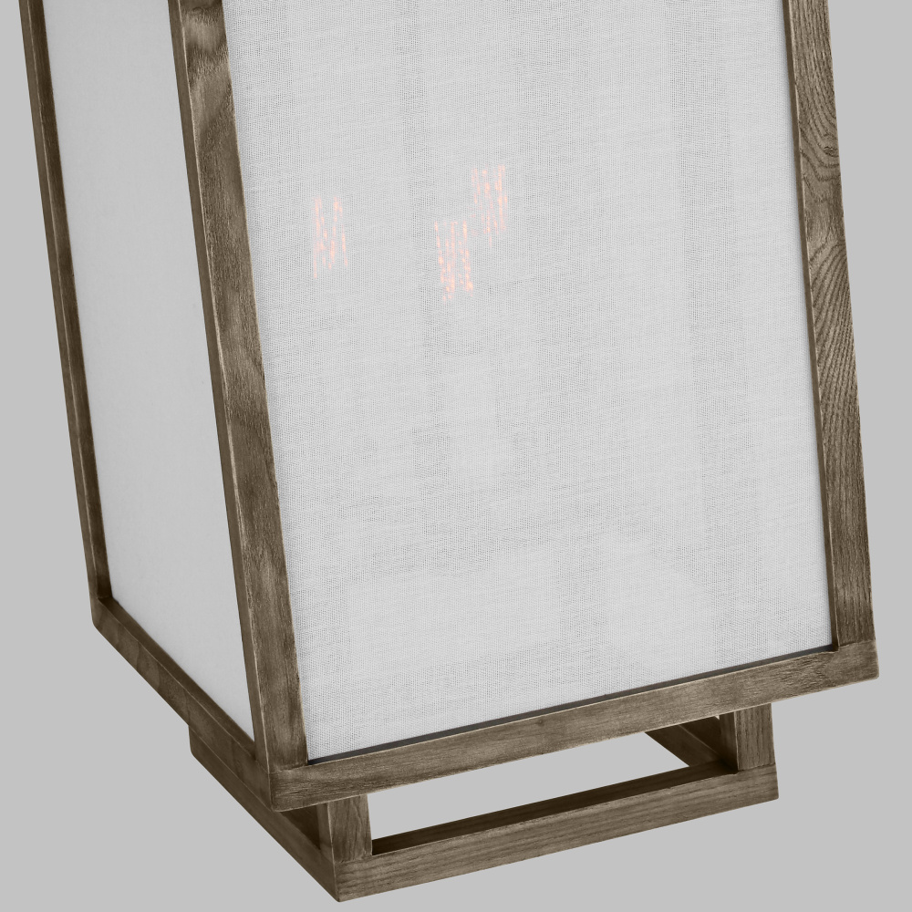 Layering is the signature staple of the Brockway series by Thom Felicia. The wood-frame-within-a-wood frame design is sheltered with linen panels allowing a hint of the architecture within to be experienced directly, while the remainder is seen diffused through the linen. The result is a light source of direct light downward and softened light through the side panel veils, creating a perfect illumination for any space.