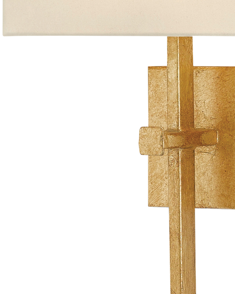 The Bronwen Bronze Bath Wall Sconce is an equestrian-inspired design with a flaring white glass shade fastened to the round wallplate with a sophisticated strap—a subtle nod to classic tack hardware. It can lean modern farmhouse, though it also complements other design styles. The metal in an oil-rubbed bronze finish is a nice contrast to the paleness of the shade, which has a glossy surface that glows. At nearly 12 inches tall, the one-light sconce is damp rated and dimmable.