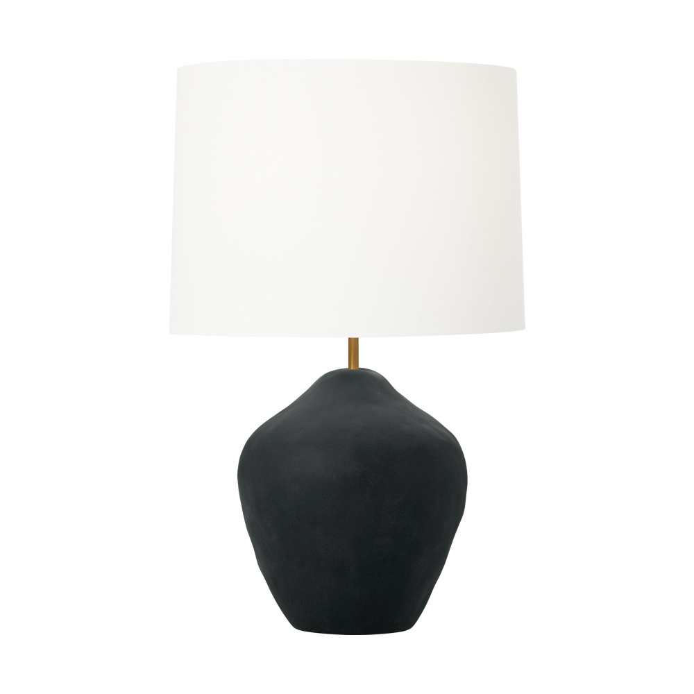 Handcrafted in ceramic, the Cadley One light table lamp by Hable has a uniquely shaped base and a black or white finish, making the Cadley table lamp an iconic design. Its crisp white shade and brass hardware perfectly accent the delicately detailed artwork. Bone offers an enduring presentation of the contemporary form that competently revitalizes your decor space. A white linen shade caps this piece off with an understated style perfect for traditional and contemporary ensembles.
