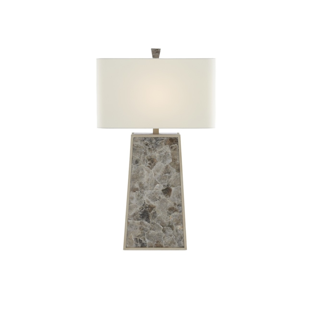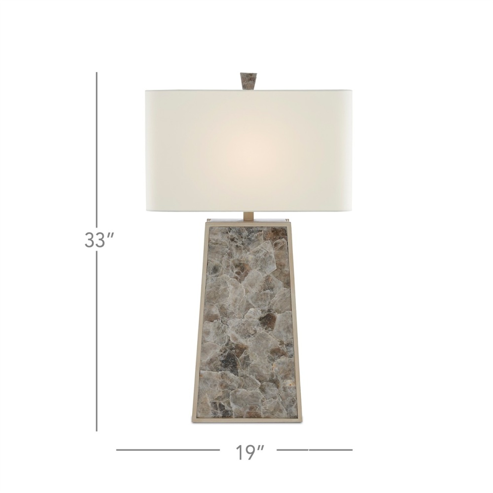 Our Calloway Table Lamp is a remarkable lamp covered in mica in a light mica finish. The natural material is surrounded by a wood frame in a silver leaf finish. A mica finial fastens the off-white shantung shade to the gray lamp to serve as a crowning touch.
