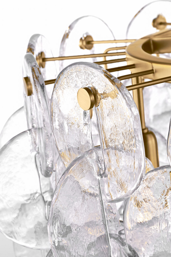 Interlocking hand-poured textured glass discs arranged in a cascading, layered form