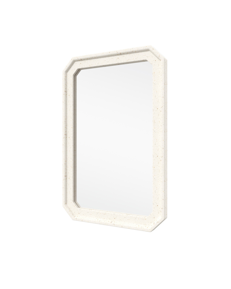 The Carson Ivory Mirror combines modern durability with refined elegance, making it a standout piece for both indoor and covered outdoor spaces. Designed with a sturdy concrete frame, it features an ivory terrazzo finish sprinkled with tempered glass fibers that create soft amber and metallic flecks. Built to withstand covered outdoor conditions, this mirror will be just as fitting for patios as for entryways or living areas. The mirror, which is poured in one solid piece, measures 43 inches by 29 inches.