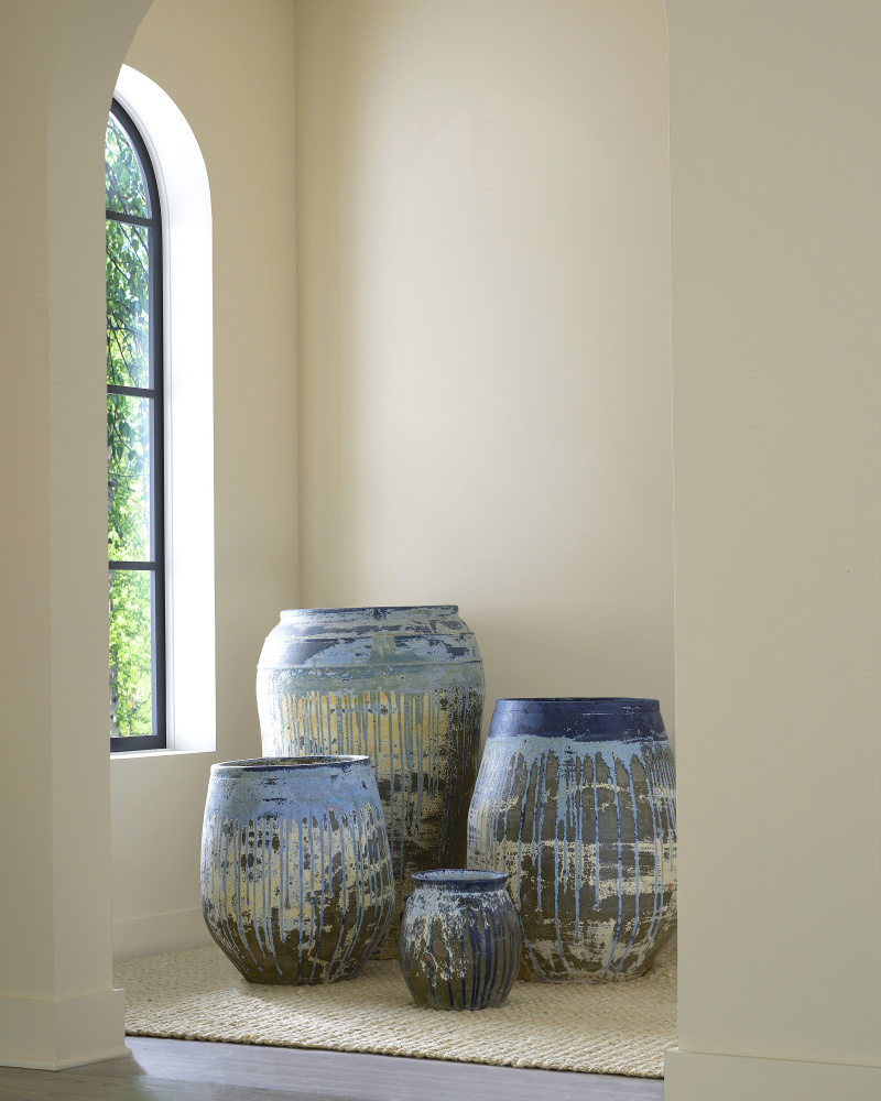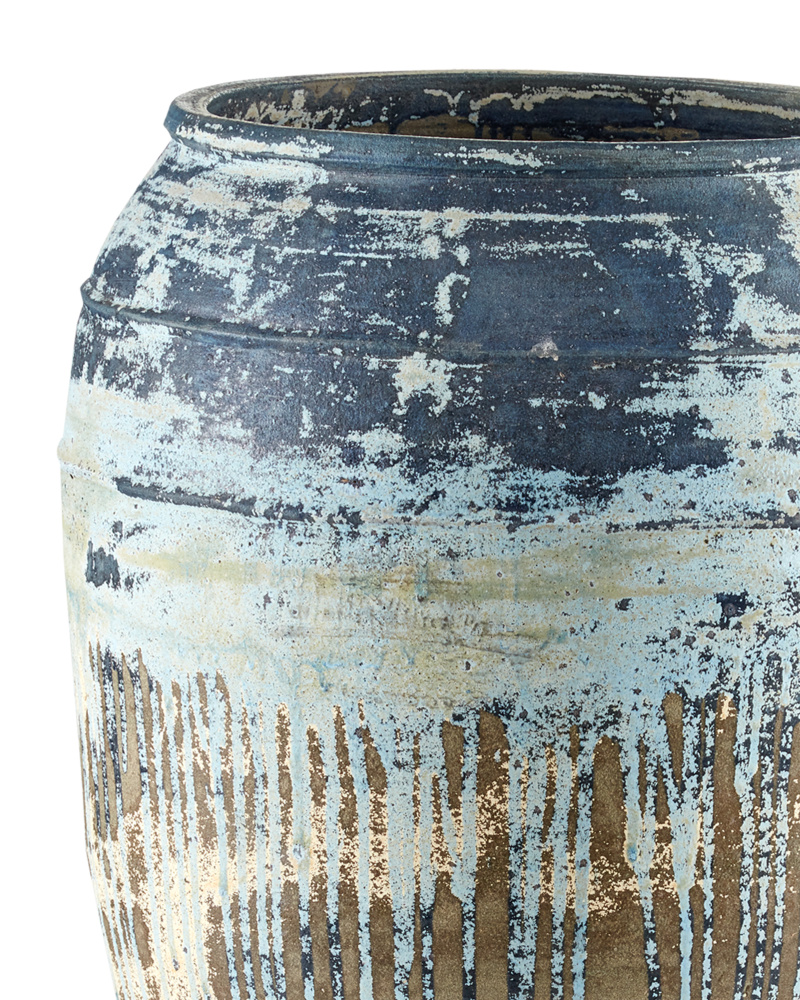 Made of terracotta with antique white and blue drip overlay, the Catania Large Antique Blue Drip Planter is a garden ornament, patio pot or interior accent that looks as if it was left to age for centuries. Whether it has a plant in it or not, it will be a vintage-inspired decorative piece of value.