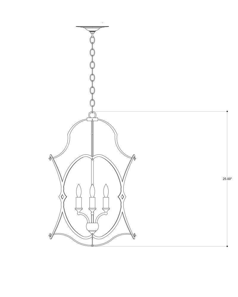 The Charisma Small Lantern has a lithesome shape in a lovely French black finish. Where the arcing ovals meet, tiny diamond shapes bring added charm to the black lantern that will invite classic Italian flair into interiors. Adjustable from 30" to 99" with use of included chain/rod kit/cable. If your space calls for a longer drop, additional chain/rods/cable is available for purchase.