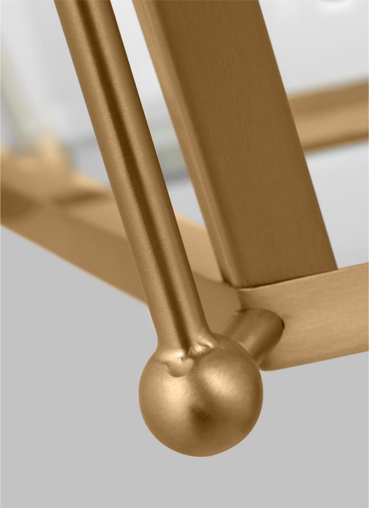 The Charleston four light indoor pendant in satin brass provides abundant light to your home, while adding style and interest. A lantern-like design with curved arms connecting to a cube-shaped frame