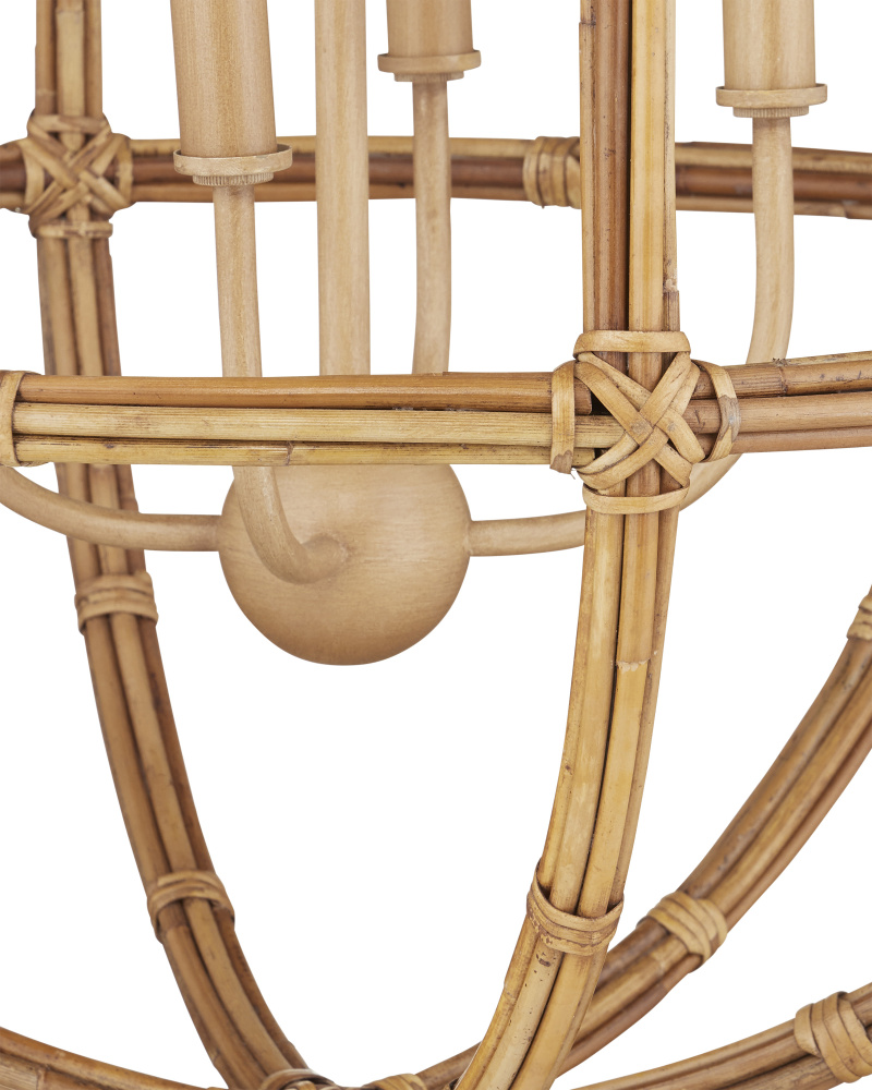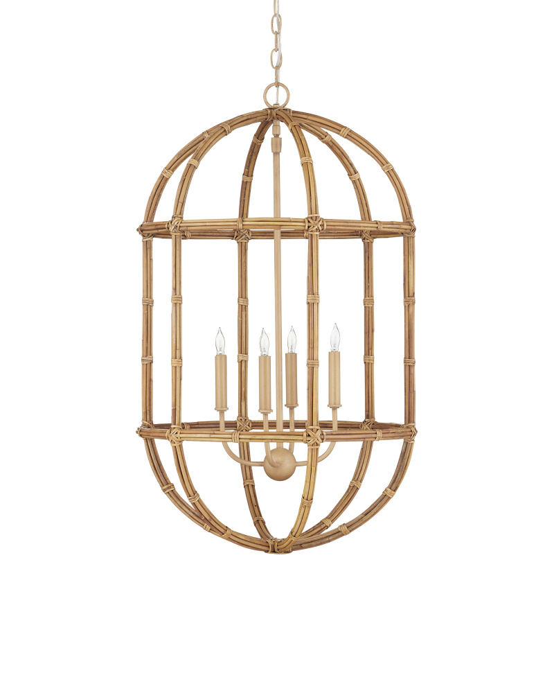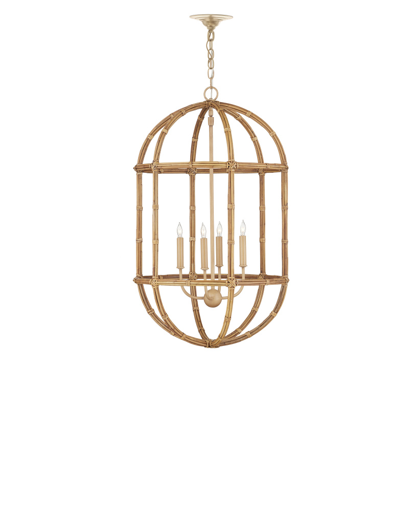 The Charrette Lantern is a thing of beauty given that the rattan reeds that form it are so perfectly placed and the knots of the same material are so artful. Wrapping and tying so uniformly is a painstaking process that makes this rattan lantern a true artisanal piece. The color of the natural material is very in sync with the saddle tan finish on the wrought iron frame and hardware. Adjustable from 41.5" to 109.5" with use of included chain/rod kit/cable. If your space calls for a longer drop, additional chain/rods/cable is available for purchase.
