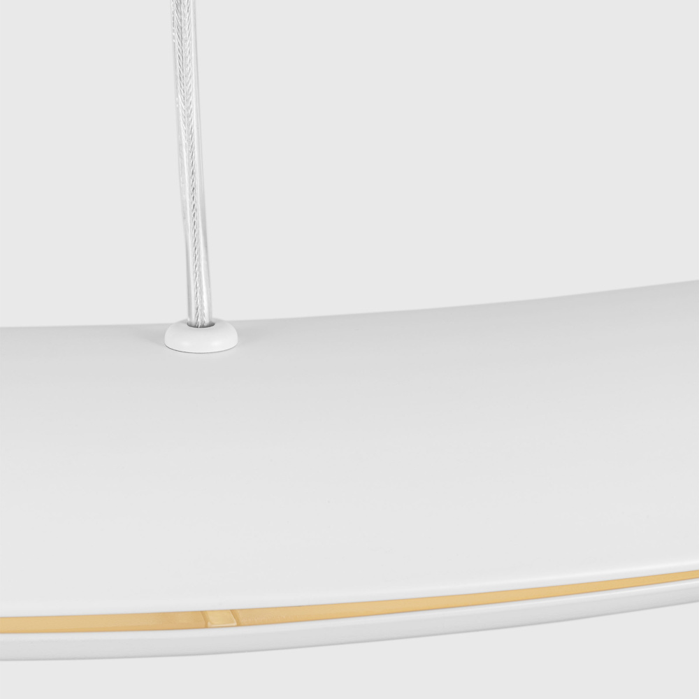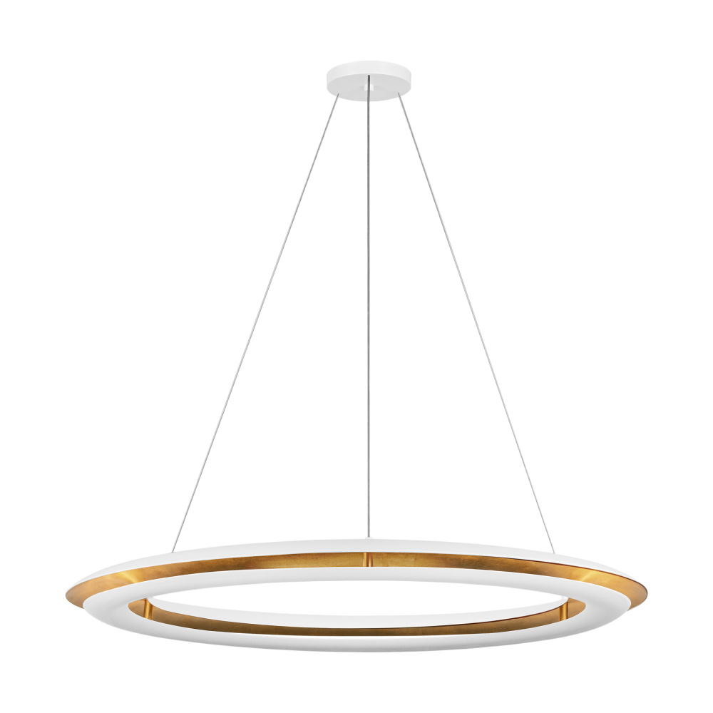 Inspired by the Spanish word for sky, the Cielo ring chandelier by Chapman & Meyers has a convex profile and emits a soft halo-like glow. The lower of the two curved metal bands conceals the upward-shining LED light source, while the upper band and the gilded interior surfaces reflect the light. Suspended by 3 delicate steel cables, the Cielo chandelier will complement modern living and dining rooms, bedrooms, hallways and entryways.