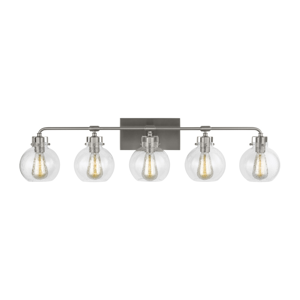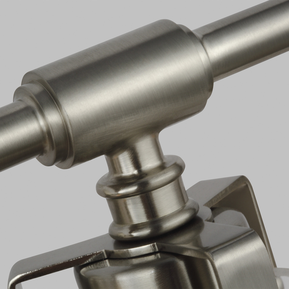 Clara features Clear Seeded glass shades that subtly diffuse the lamping while allowing the exposed bulb to be a central design element of the fixture. Choose the look that is right for your space with four finish options: Burnished Brass, Chrome, Satin Nickel, Oil Rubbed Bronze or a two-toned finish of Textured Black with Chrome.