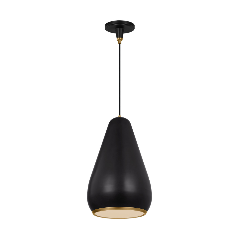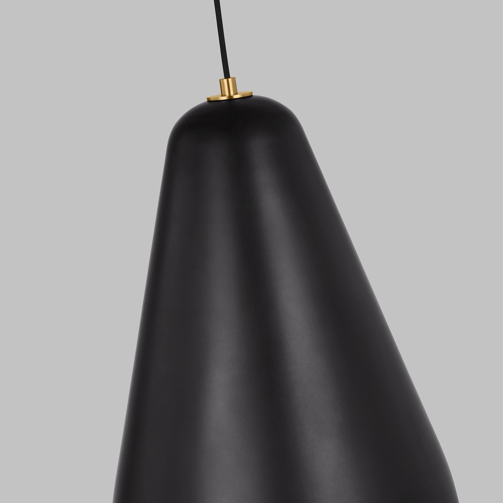 Inspired by various vases and accessories in his collection, the Clasica Pendants by Thomas O'Brien are all about simple, organic shapes. Perfect for any contemporary space. Clasica pendants are very unique shapes, accented with a banded detail at the bottom and top fitting for a distinctive character. The canopy was specifically designed to coordinate the design throughout the entire fixture. Providing ample downward focused light this lamp looks stunning on its own or in multiples. Available in Aged Iron and Matte White.