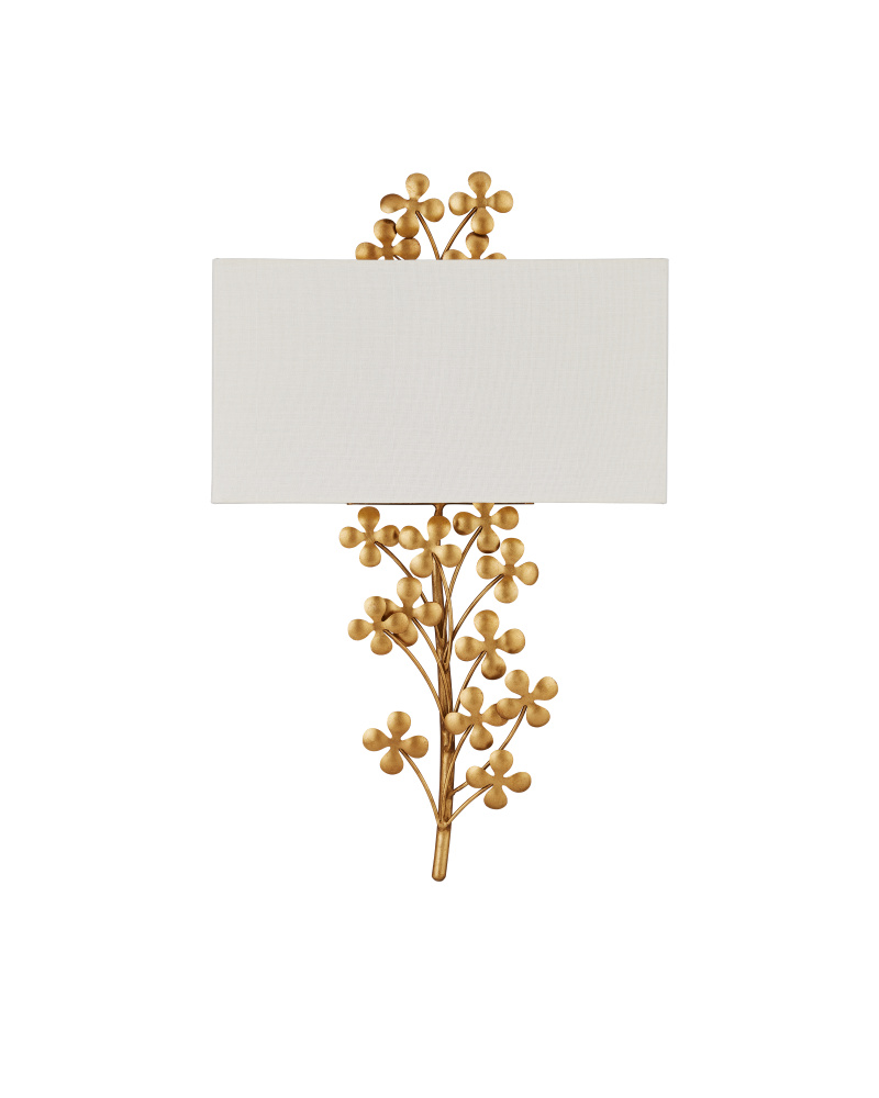 Bring a bit of good luck to a space with the Cloverfield Wall Sconce, which has a flowing design inspired by the shamrock. Made of wrought iron, the whimsical gold pendant is pretty in a mix of contemporary gold leaf and contemporary gold finishes. Bringing nature indoors without sacrificing sophistication is one of the benefits of choosing a light fixture that has an elemental theme but has an elegance to its form. This sconce is ADA compliant.