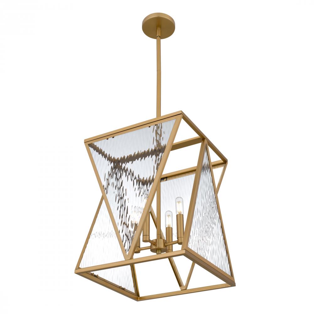 Sculptural and softly luminous, the Clovis Pendant Light blends classic charm with a modern edge. Its bold geometric frame—available in brushed weathered brass or matte black—cradles panels of clear water glass that ripple with movement, casting a glow