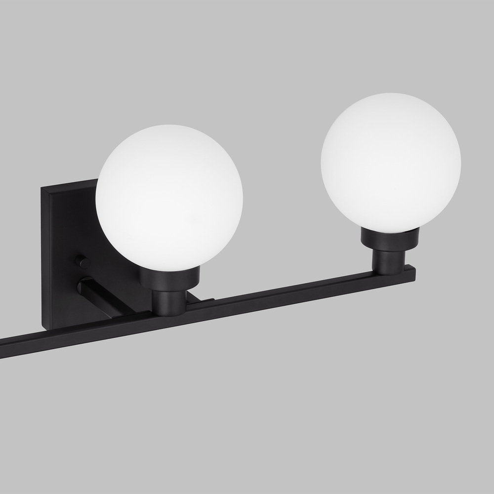 The Clybourn three light vanity fixture in Midnight Black is an industrial yet minimalist design, making this fixture perfect for an eclectic living room or over a modern dining room table. Milk Glass gives the Clybourn series a more current look.