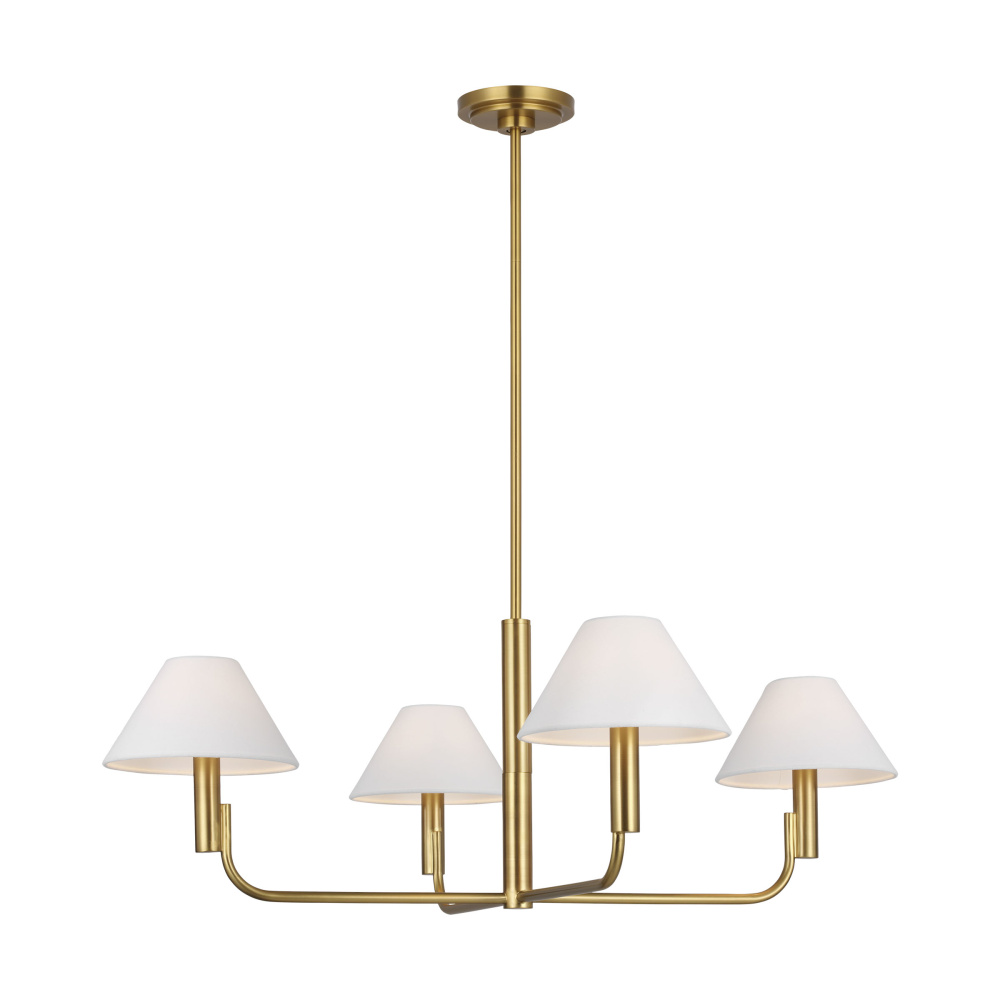 Crafted with Steel in a Burnished Brass finish with white linen shades
