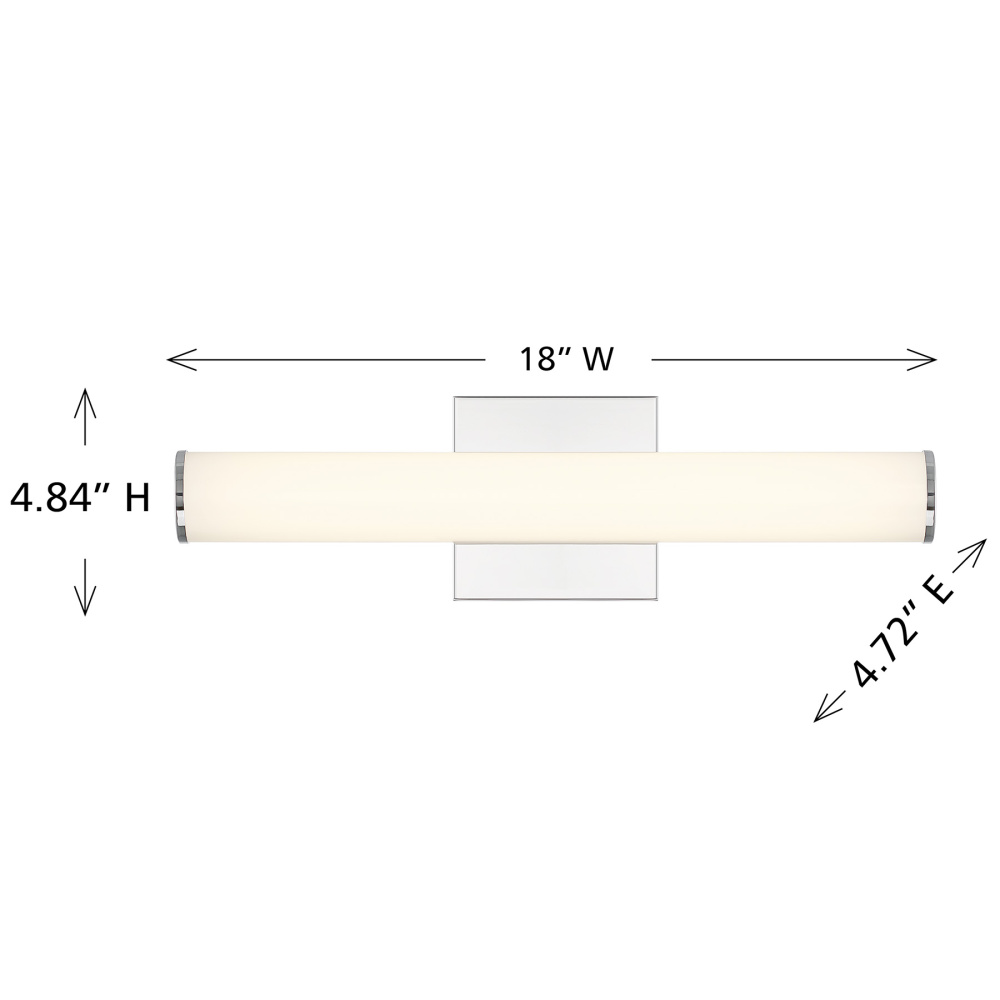 With its bold cylindrical form and crisp lines, the Savoy House Colt LED bath vanity light brings strong, contemporary style and bright, functional illumination to the vanity. The integrated LED delivers 1600 lumens at a 3000K color temperature and 90 CRI, giving you clear, flattering light for everyday routines. Finished in Chrome, Colt measures 4.7" in height, 18" in width and extends 2.7" from the wall. It is damp area rated, fully dimmable, and can be mounted horizontally or vertically to suit your layout. Part of Lighting Assets, a collection of stylish and practical lighting solutions for every space.