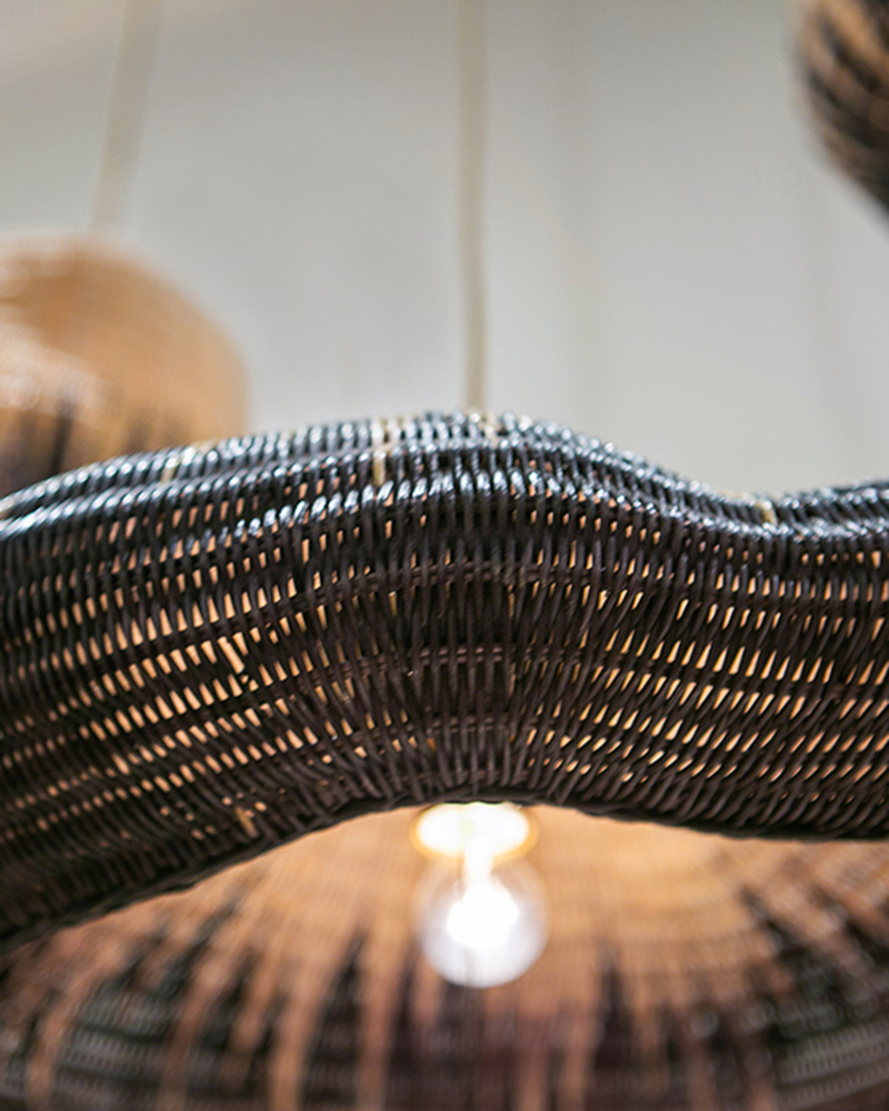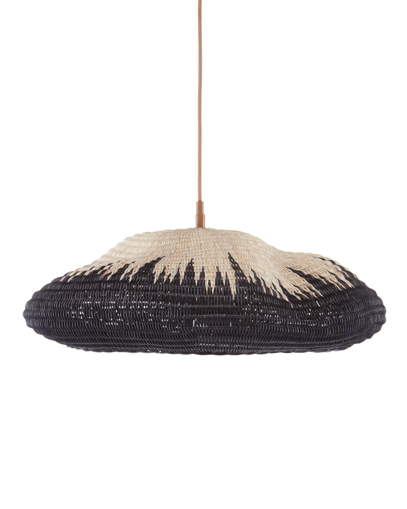 The Comme Des Paniers Pendant was inspired by wicker bags our design team saw in Paris. Panier in French means basket, the name a nod to the basket-weave it took to achieve this cloche-like shade. A detail of note is how the two-tone wicker shade looks as if there is a flame flowing up it. The wrought iron hardware on this basket-weave pendant is in a Khaki finish. Adjustable from 15.5" to 129.5" with use of included chain/rod kit/cable. If your space calls for a longer drop, additional chain/rods/cable is available for purchase.