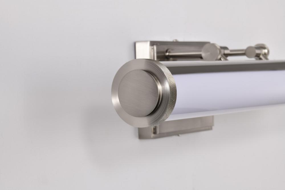 Unveil the beauty of modern design with the Cora Collection, where every detail is crafted to perfection. Featuring elegant, knurled end knobs and a sleek, curved opaque acrylic lens, this LED bath vanity blends sophistication with innovative functionality