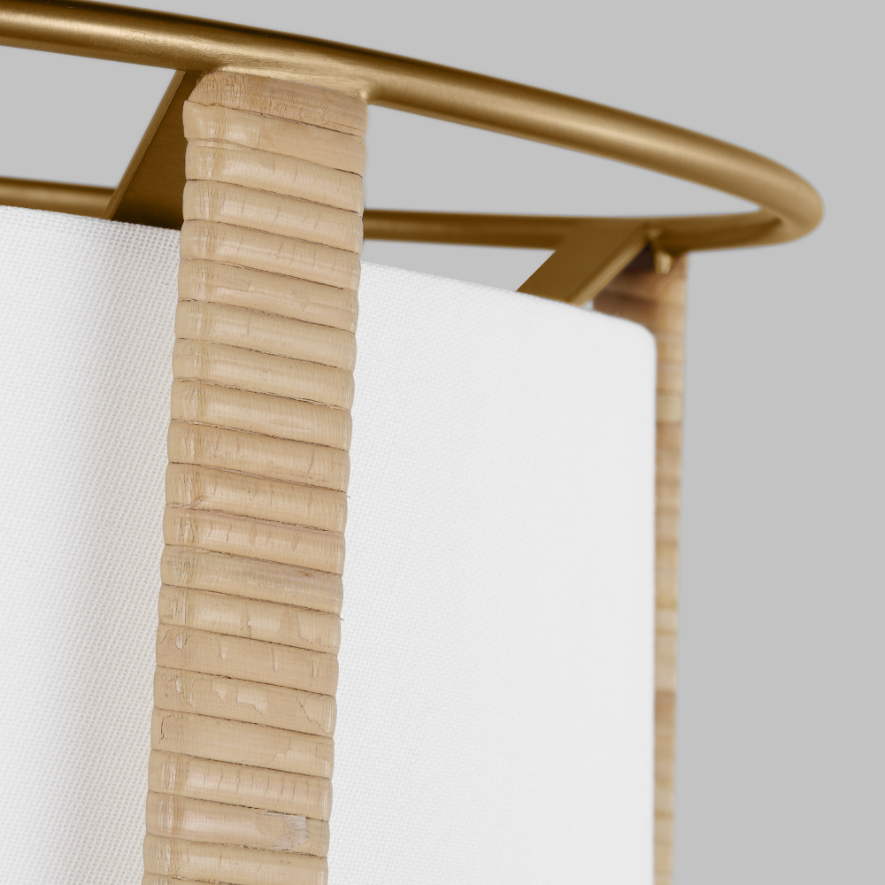 The Cortes series by Drew & Jonathan is the perfect addition to any home with minimalist or natural fiber decor. A sophisticated, satin brass finish complements the handwoven natural rattan material used to line the white linen shade.