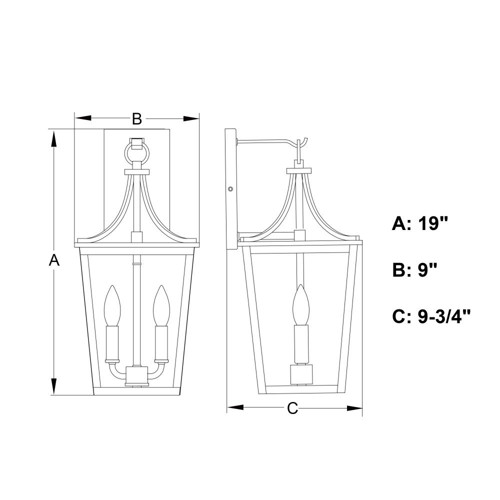 9-in W x 19-in H x 9.75-in D with 4.72-in W x 8.27-in H backplate