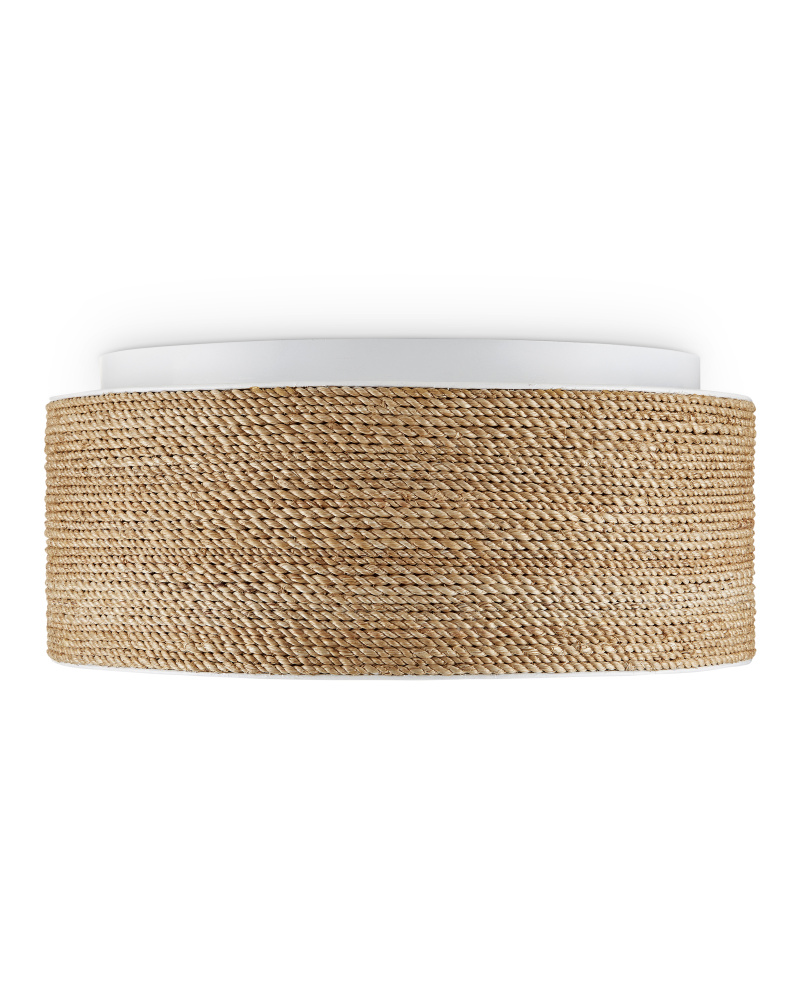 Abaca rope is densely woven around the circumference of the Coulton Flush Mount, a design that was created to be luminous. Choices that enhance the glow include the sugar white finish and the acrylic diffuser. This fixture illustrates how painstaking it is to weave natural fibers so consistently and evenly to create the textural rows that bring it warmth.