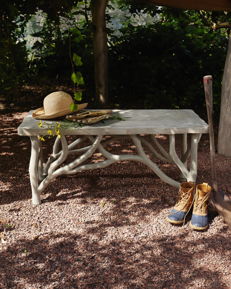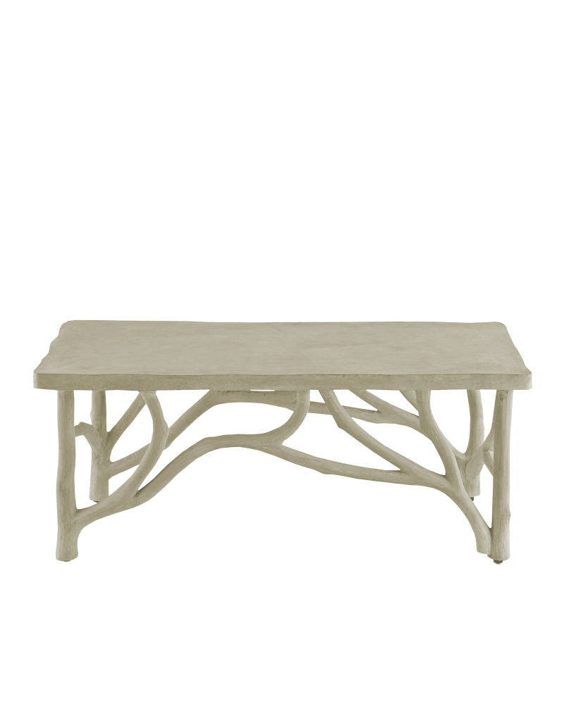 The flowing twig-like details on the Creekside Table/Bench were realized with faux bois construction techniques. The graceful branching profile makes this table in a faux bois natural finish a veritable sculpture in a space, be it indoors or out. We also offer the Creekside as a console table.