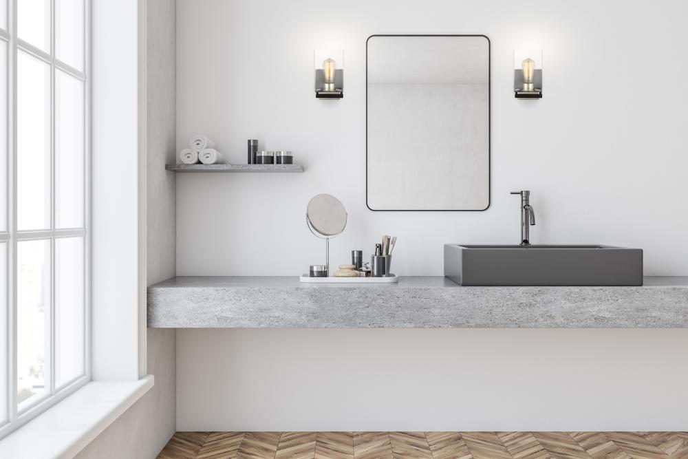 A combination of glass and metal comes together to create the stunning design of the Crossroad vanity light. The square, clear glass shades showcase the bulb. The socket and base are finished in brushed nickel to contrast beautifully with the matte black f
