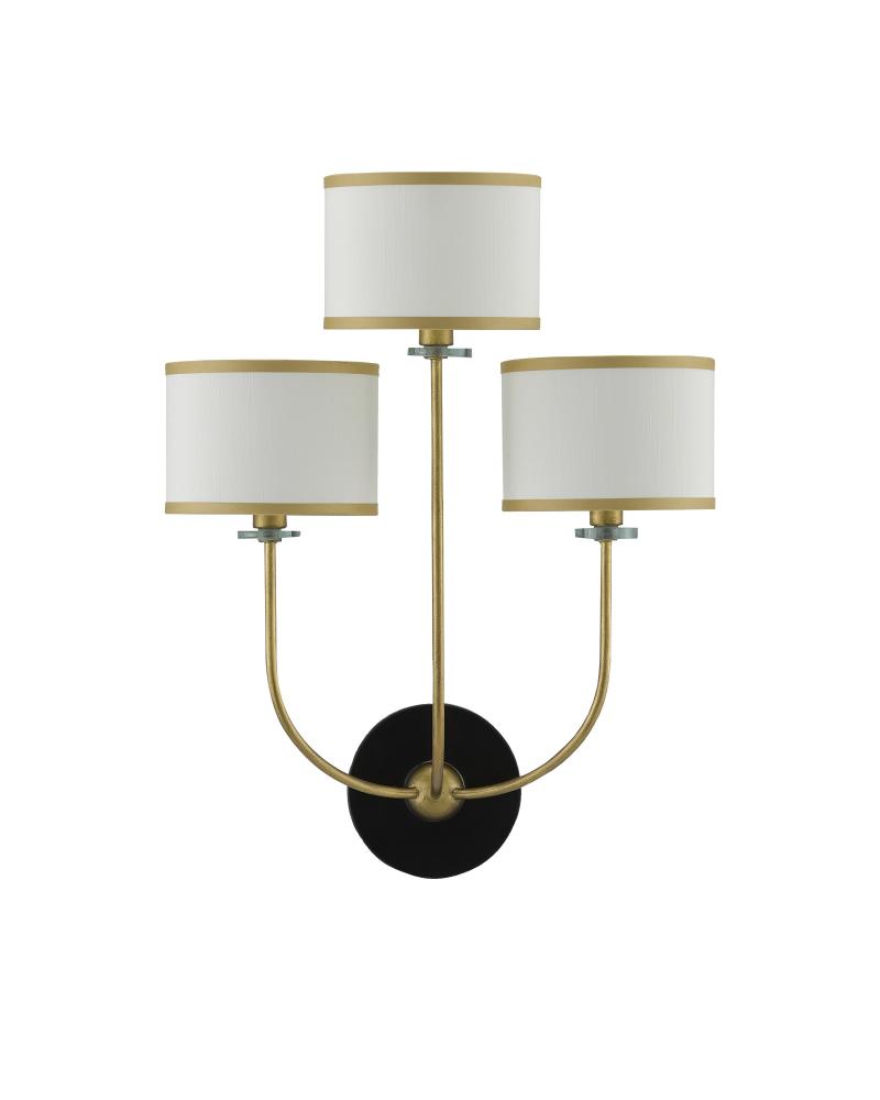The Croydon Wall Sconce is an elegant design inspired by the waterlily. The arms represent the flower's submerged stems, while the shades mimic the shape and color of the blooms. The bobeches, in contrast, reflect the color of water. Crafted from wrought iron with brass and satin black finishes, this gold wall sconce combines simplicity with a story rich in natural inspiration.